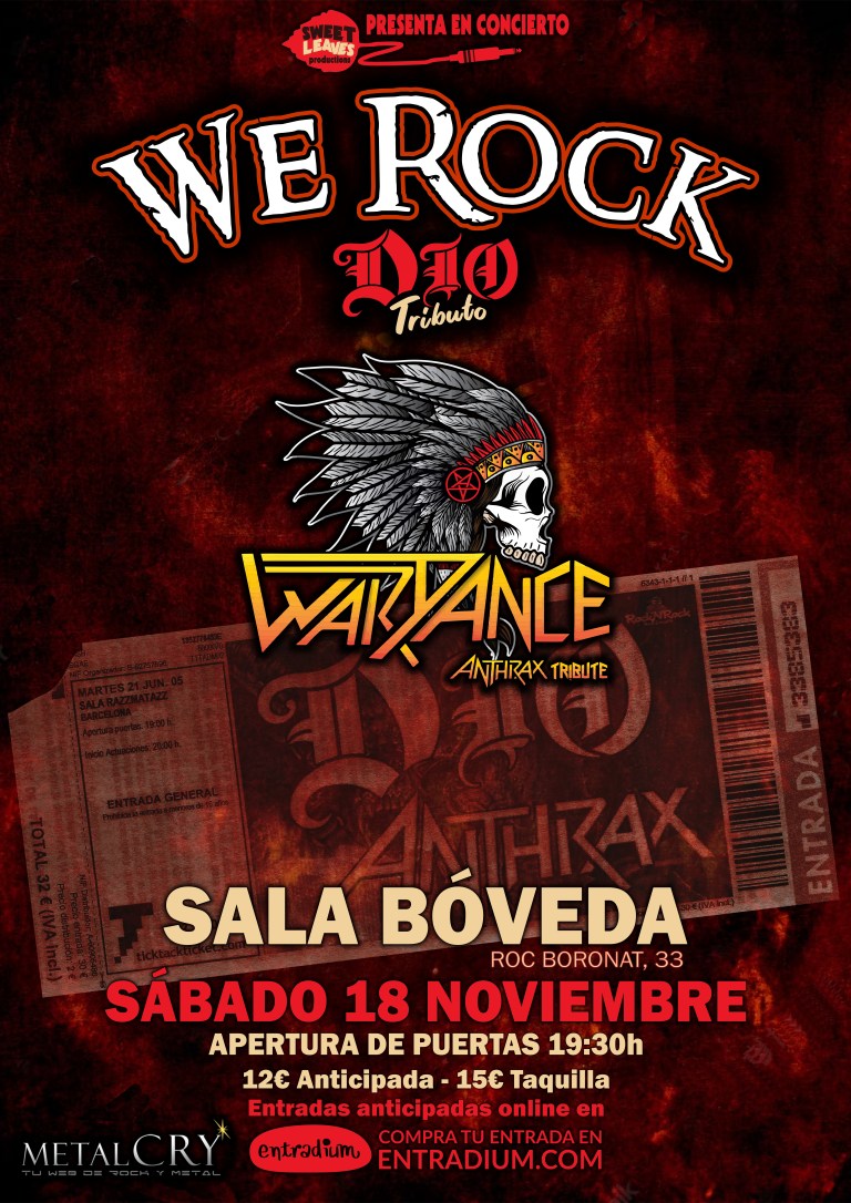 También contaremos con Wardance, tributo a la banda de thrash metal Anthrax que rendiran homenaje a la banda considerada como uno de los grupos principales de la escena thrash junto a Metallica, Megadeth y Slayer. Entre 1991 y 2004, vendió cerca de 2,5 millones de copias únicamente en los Estados Unidos y 10 millones en todo el mundo.