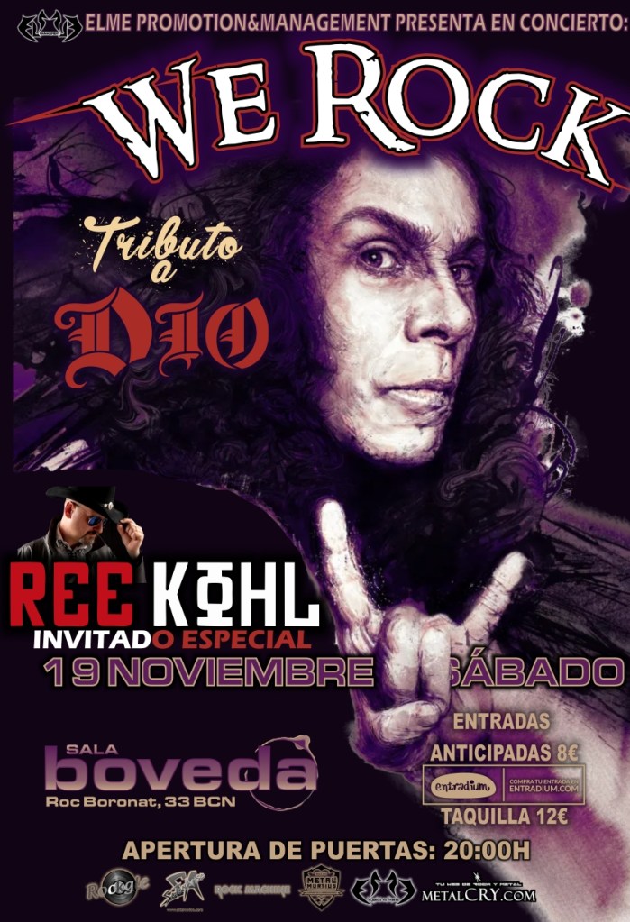 Conciertos pasados Sala Bóveda Barcelona 20 de Mayo de 2023 Homenaje a DIO (con Blackmore’s Rising) Sala Rasa64 Terrassa 25 Febrero 2023 (con Ree Kohl) Sala Bóveda Barcelona 19 Noviembre 2022 (con Ree Kohl) Sala Bóveda Barcelona 4 Junio 2022 (con Anzestra) Sala Bóveda Barcelona 8 Abril 2022 (con Motörhits) Sala Jokers House Barcelona 5 Marzo 2022 (fiesta privada) Sala Bóveda Barcelona 15 Osctubre 2021 Sala MONASTERIO Barcelona 25 Enero 2020 Sala THE CAVERN Terrassa 5 Octubre 2019 Sala THE GARAGE L’Hospitalet 6 Abril 2019 Sala BREAKOUT Sabadell 16 Marzo 2019 Compártelo: Haz clic para compartir en Facebook (Se abre en una ventana nueva) Facebook Haz clic para compartir en Telegram (Se abre en una ventana nueva) Telegram Haz clic para enviar un enlace por correo electrónico a un amigo (Se abre en una ventana nueva) Correo electrónico Haz clic para compartir en WhatsApp (Se abre en una ventana nueva) WhatsApp Me gusta Cargando...